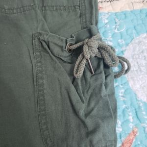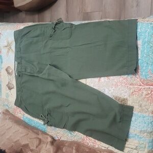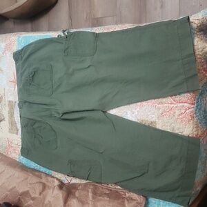 Olive green old navy mid rise capri. Snap botton with pockets. It has small tie pocket on the leg.