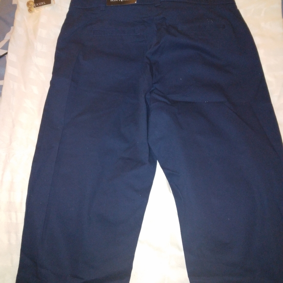 Comfort waist, Capri,size10 with buttons down at the end of the leg.blue in color.