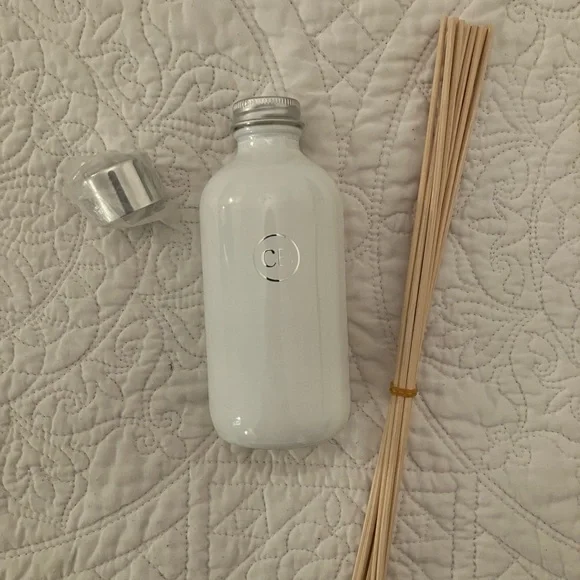 Elevate your space with this stylish white reed diffuser, featuring a sleek silver cap. Perfect for adding a touch of elegance to any room.