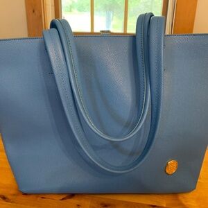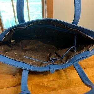 Brand new- never used Vince Camuto 100 percent leather tote bag. Brown fabric lining, middle divider and side zipper pocket. Can be used as a tote bag, or handbag/shoulder bag.
