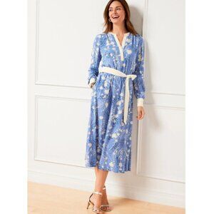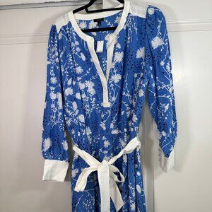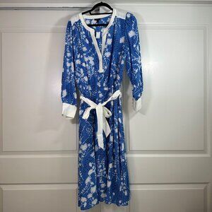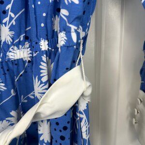 Capri Blue & White Dancing Flowers Belted Fit & Flare Shirtdress - NEW