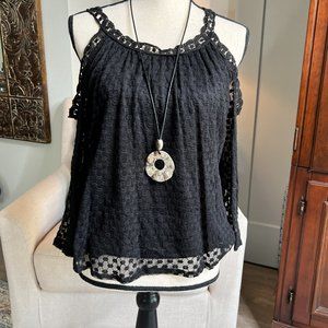 Cold Shoulder Lace Embroidered Top