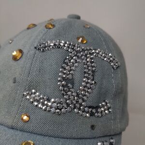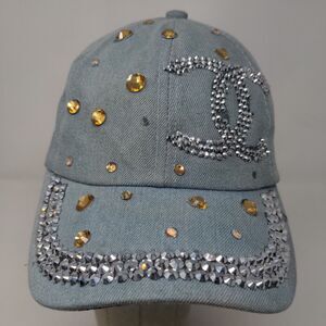 Capri Corn Women's Slideback Hat Blue Adjustable Rhinestones Shiny Accents