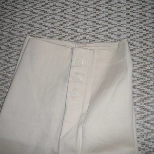Dressy style. Flat waistband. No pockets. Ivory/off white.