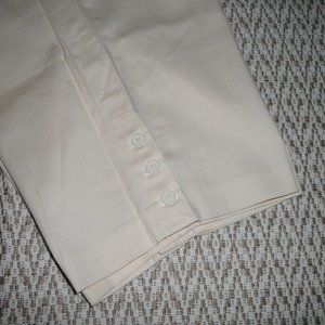 Monroe & Main ivory capri crop pants with button detail at the leg opening,