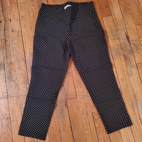 Black capri pants with stretch waistband & white polka dots.