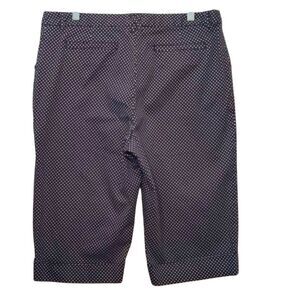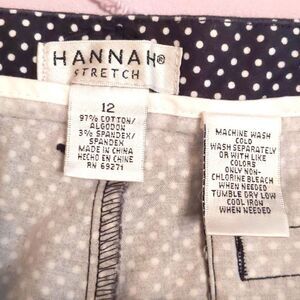 These Hannah Capri pants feature a sleek flat front design in a fun polka dot design. Made from substantial weight cotton and spandex fabric, they offer comfort and style with a tailored appearance.