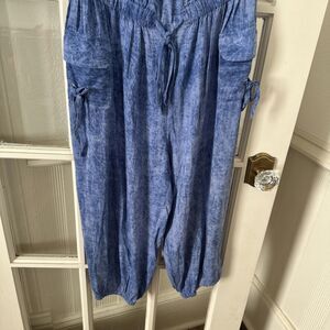 Capri Tube Top Jumper Jumpsuit Blue Women's Large Strapless