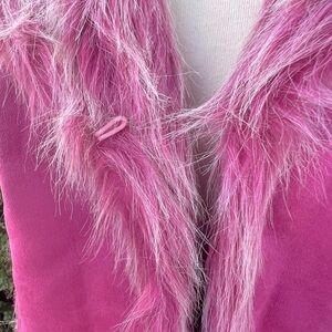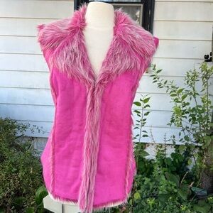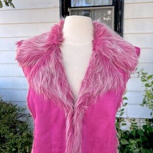 Beautiful hot pink plus size woman's faux suede vest with faux fur lining by Capri. This vest is absolutely gorgeous. Hook closure, Size 2x, worn once and in excellent condition with no flaws. Pit 27 Inches. Perfect for the fall/ winter season. Savvy On A Budget 🌺