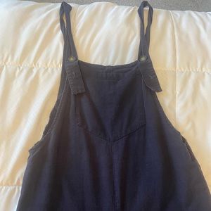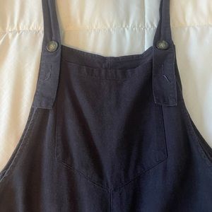 Navy overalls with large pocket on the front. Super cute.
