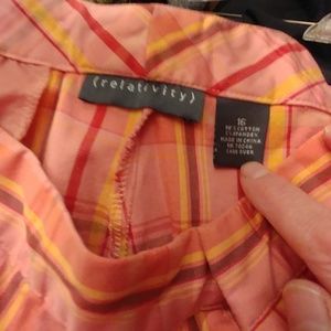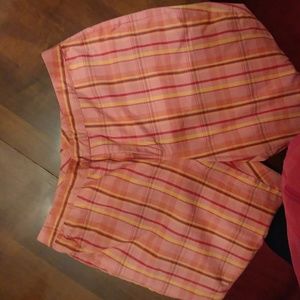 Plaid coral colored capris with one back pocket and two front pockets. Unlined. Excellent condition.