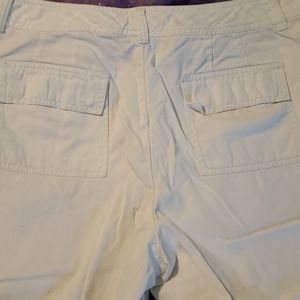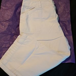 Caribbean Joe Petite capri pants, white, belted waist, 2 minut specks pictured above, 31" waist to bottom of pant leg, 17" waist