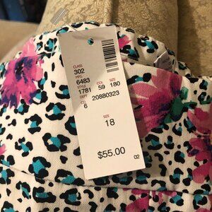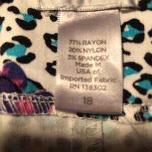 Bright floral print, size 18, super stretch, Rayon, nylon, spandex fabric.