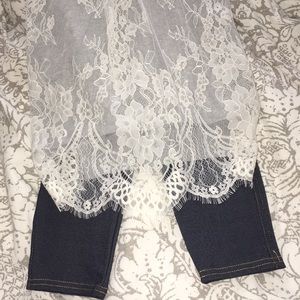 Brand new. Gray top with Lacey back. Capri jeggings