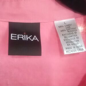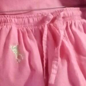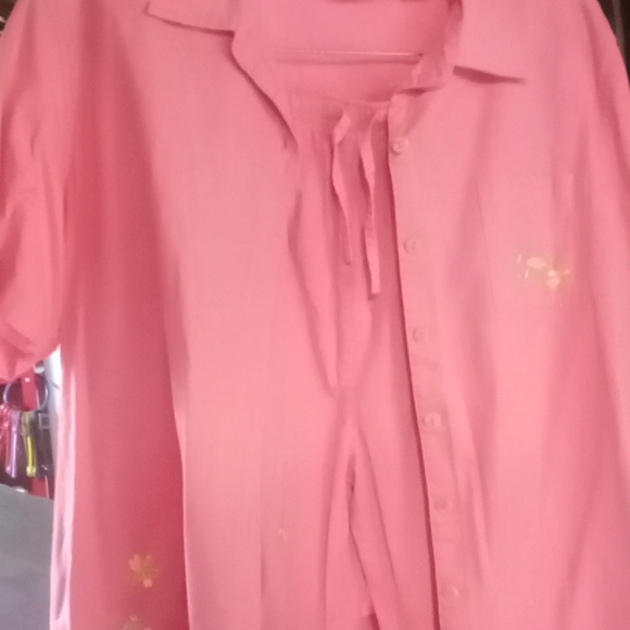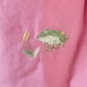 Ericka size lg Capri with short sleeve top has embroidery frogs flowers light pink in color