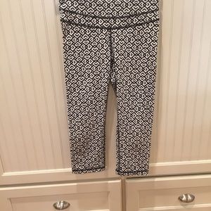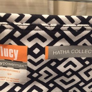 Lucy Powermax, capri length, Hatha Collection, black and white print yoga tights. Size S/P. Worn but in excellent condition.