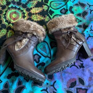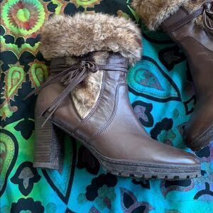 Caprice Women's Leather Faux Fur Heeled Brown Boots - Size 8