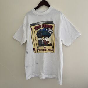 This fun vintage graphic T is a size large and measures 29 inches long and 20.5 inches wide. Graphic and all stitching in excellent condition, but does have a few small stains as pictured. Great piece for a reworking or up cycle project. Dated 1993.