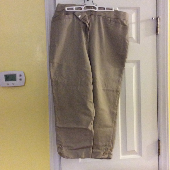 Tan capri's size 16. Two buttons on the bottom of each pant leg