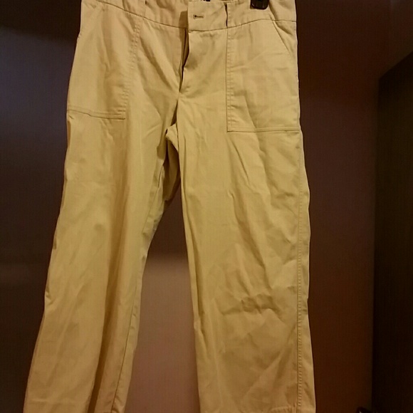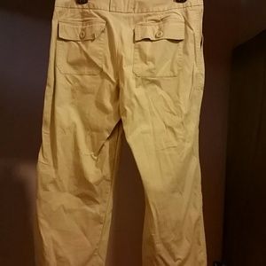 Tan Capris pant button is missing but there is one on the inside to use
