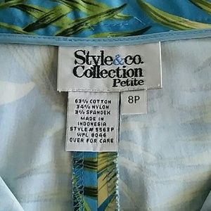 Style & Co. Collection capris in bold tropical print with brilliant green palm leaves on blue background, size 8P