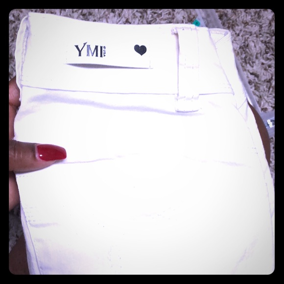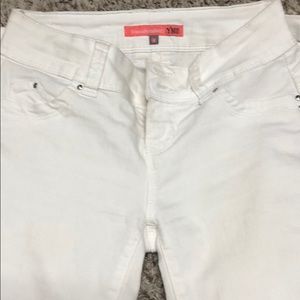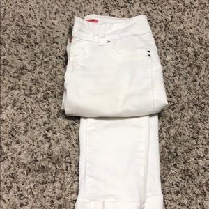 White 5 pocket Capri length pants stretch material
