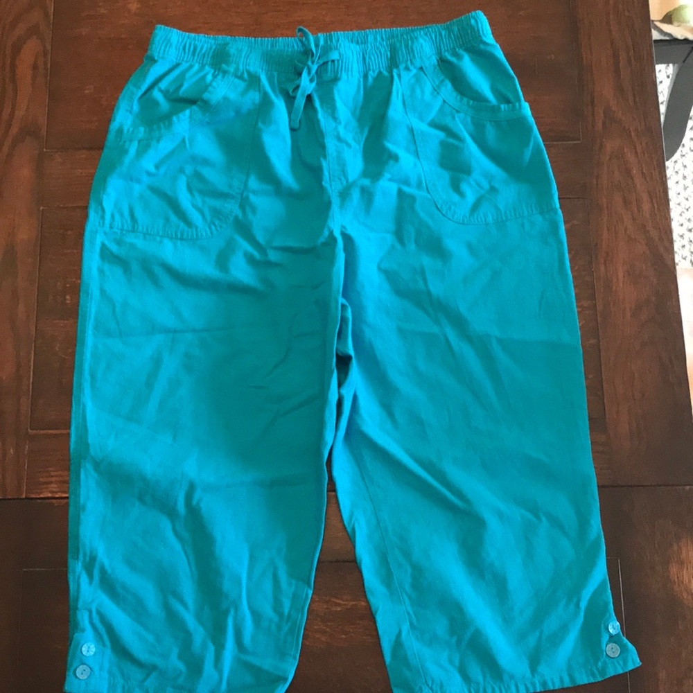 Elastic waist 100% cotton aqua colored capris. EUC