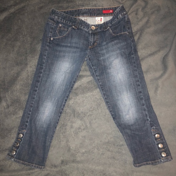 Denim capris with cute buttons at the bottom!