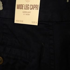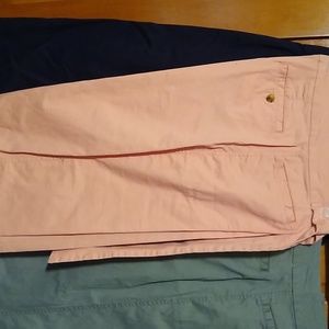 Three pair brand new capris never worn with tags on them. Peach, olive green and navy blue. Three I paid $36 each. Selling all three of them together they are size 9. They run a little small so I would imagine there a 7 fitting. $7 dollars each or all three pair for 20