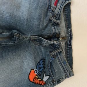 EUC. Only worn once. This pair of capris are so cool! They’ve got great embroidery almost like tattoos designs. They are made for someone with a smaller waist. I’m a 6 but athletic build with almost no hourglass shape! So adorable and can go with so many colors. I hate to see them go!!