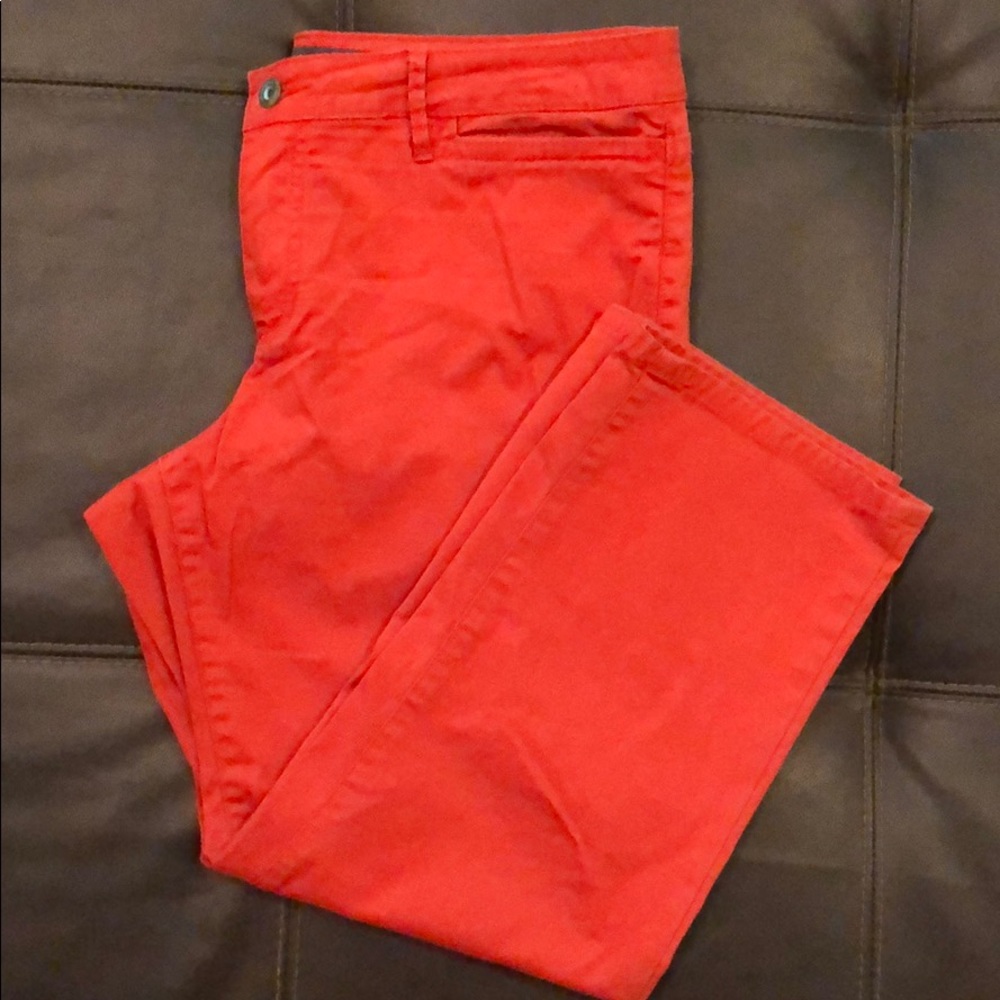 Awesome mid rise Capris in a rich orange color. Great for spring through fall if temps allow. Have stretch in them; Super comfy to wear. Dress up or down. 3rd image depicts how they fit, but length is slightly longer on for sale pair. Run on the larger side of 12. Worn a handful of times; no rips, stains, or pilling. Accept reasonable offers.