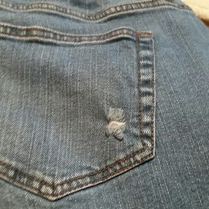tudic destressed capris. I bought them from QVC. They wash up nicely and are very comfortable. The destressed parts are made so that they don't become big holes. They are 32 inches from the waist and have a 23 inch inseam.
