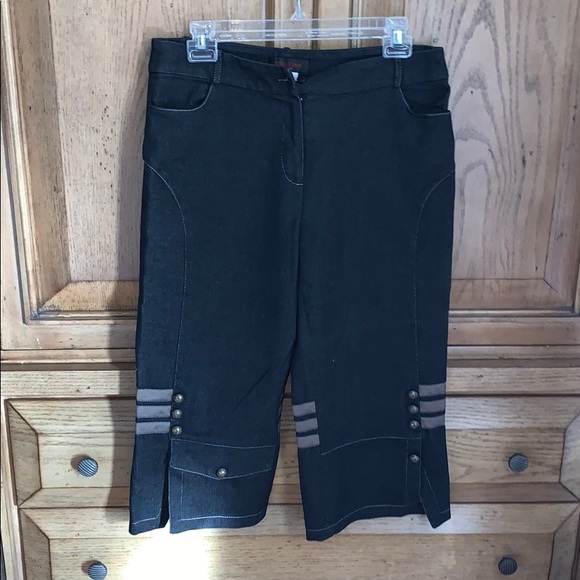 Black denim wide leg capris Imitation button detail on each leg with stripes