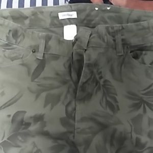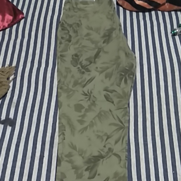 Green Capri pants with leaf patterns like new.