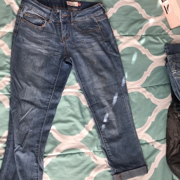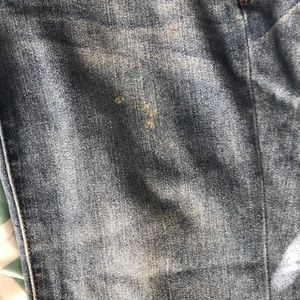 One small yellow stain on right pant leg