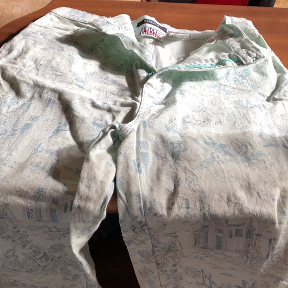 Beautiful baby blue capris with “historical pattern size 12 Bill Blass STRETCH
