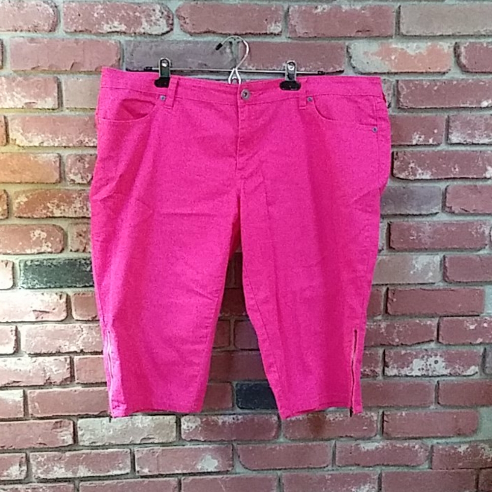Pink jean capris with side-zipper detail