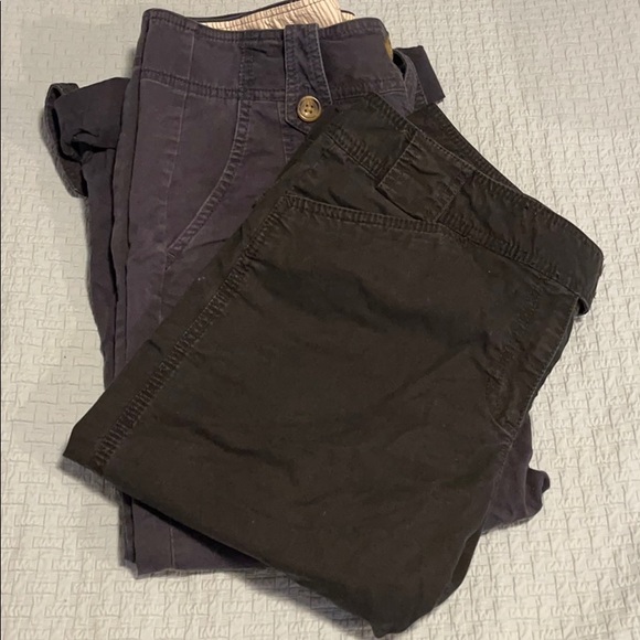 Long Navy capris with flare button legs and black short capris with straight leg