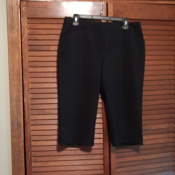 Black capri pants, zip front, no rips or stains, smoke free home