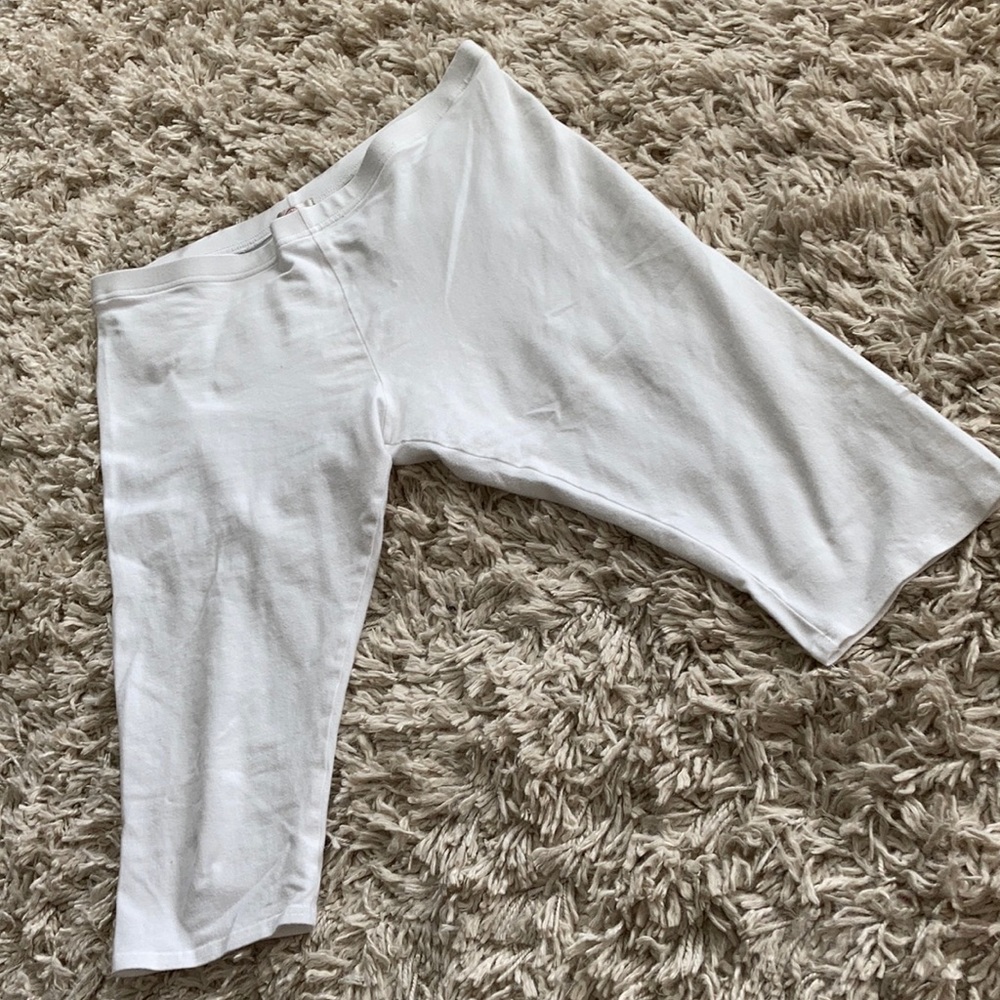 Hot in Hollywood white cropped leggings 23” from top to bottom and inseam 13”.