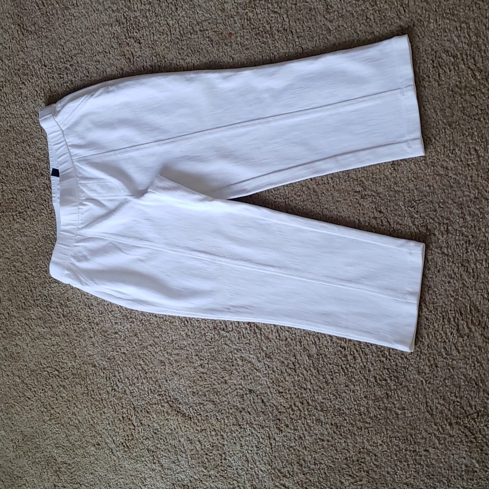 Isaac mizrahi size 12 petite, white stretch knit, front seaming, 2 back pockets and 2 side pockets.