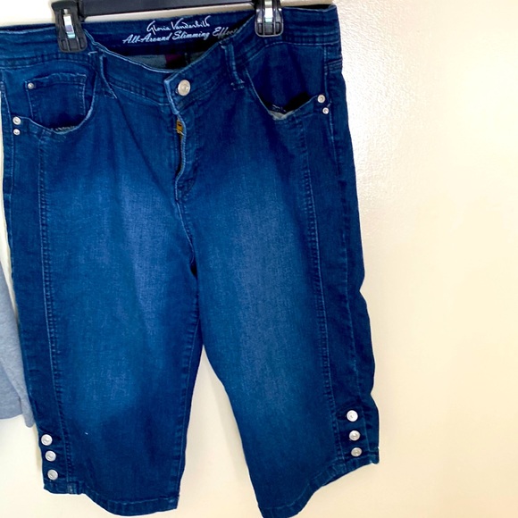 Very good shape brand new petite button on side leg that you can undo, all around slimming effect pockets front and back denim fabric