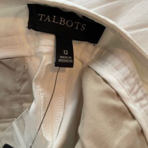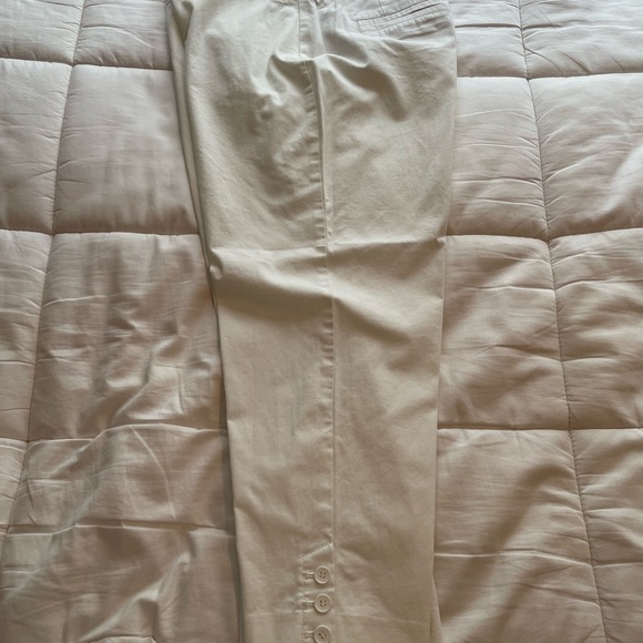 White dressy capris with 3 button detailing at bottom. Brand new with tags! Size 12