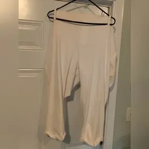 Brand New, never worn it still has the tags on it. There are small light stains on it, I didn't notice it when I purchased it. They are perfect for dying. They are very light and comfortable, very relaxed fit. Size 4X (26W-28W).
