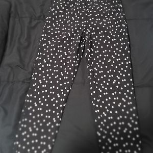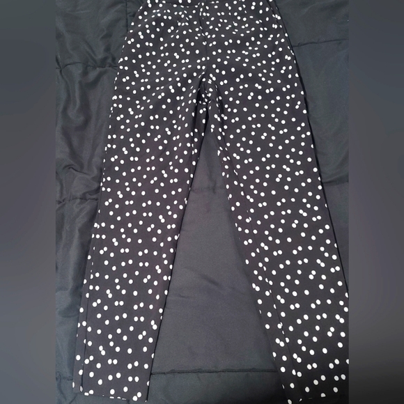 black with white poka dots Capris pants with side zipper.