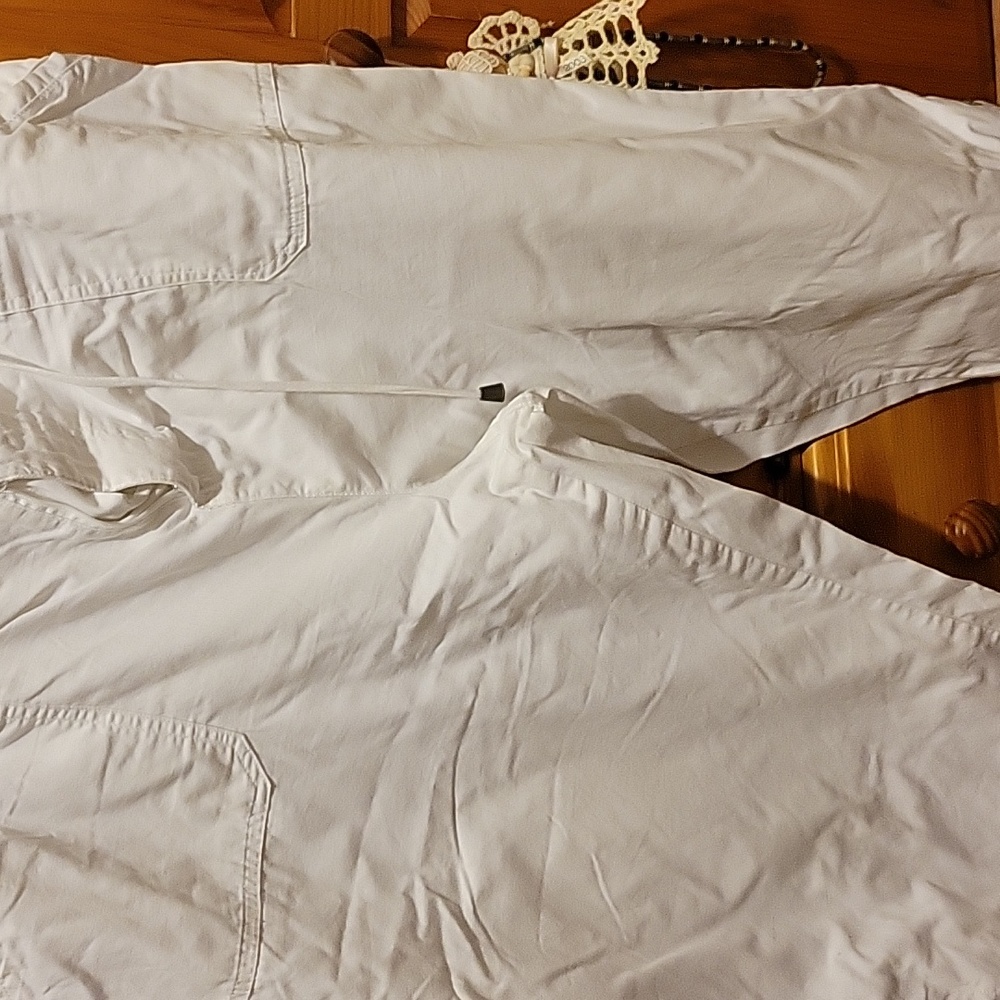 white capris/ pull string tie and buttons at the legs! cotton fabric and good condition.