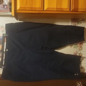 Navy capris w/ button detail & belt loops.cotton fabric