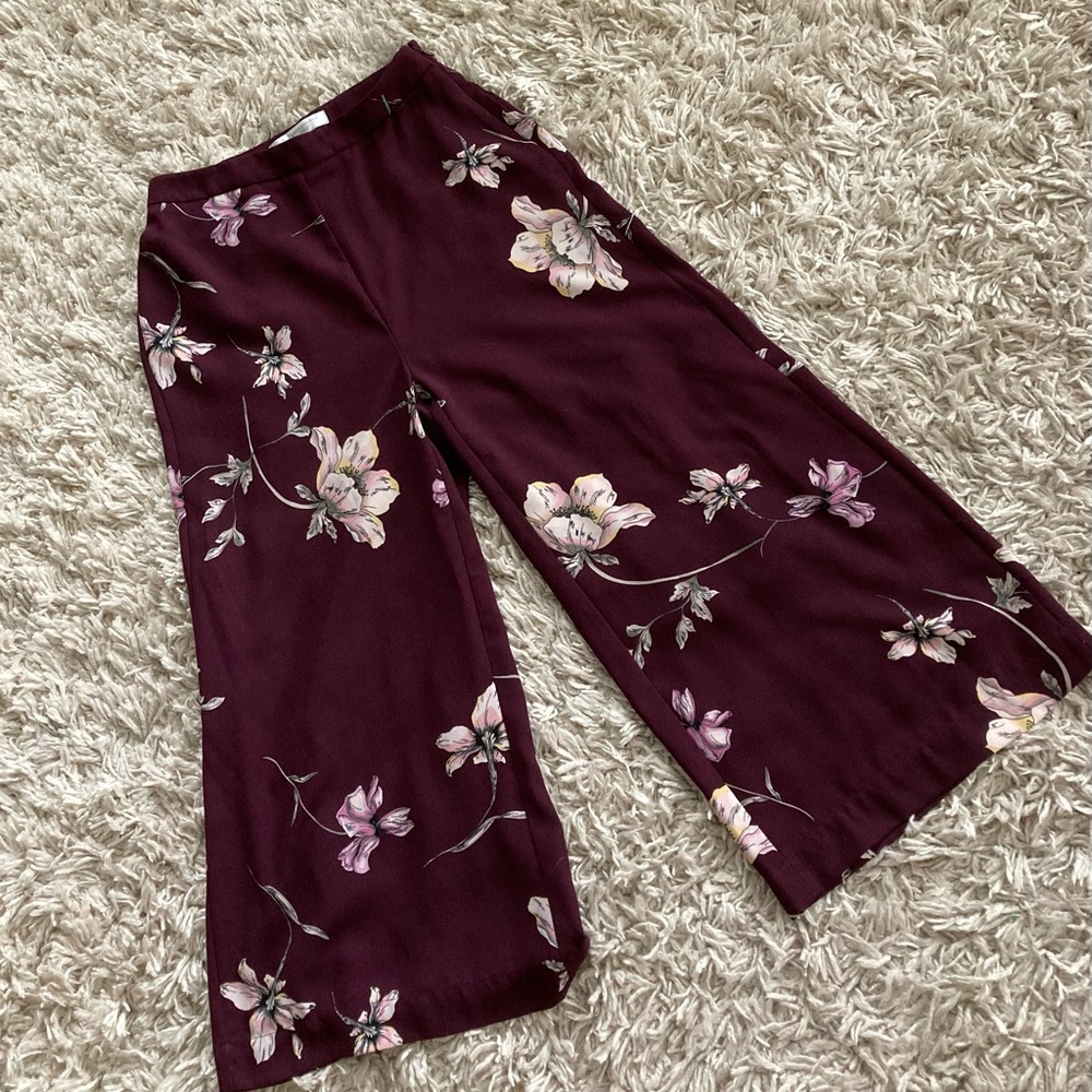 Burgundy color capris with some iris flowers