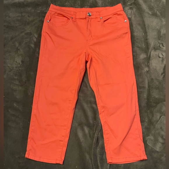Like new, never worn, Coral colored Capris from Venus! Size 8. Rhinestone button closure. Functional pockets.