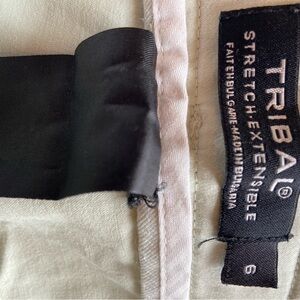 Women’s light green capri pants 31 inches long with buttons adorned at the bottom